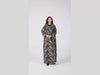 Spun from textured raw silk, the Flutter abaya glides with natural movement and softness. A butterfly wing motif fans across the surface, delicate and expressive, suggesting lightness and freedom in flight. A soft tie detail at the side cinches the shape gently, adding fluid definition to the form.