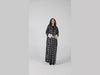 Crafted from fluid silk, the Orbit abaya features a graceful A-line silhouette, subtly flaring for ease and movement. The design is brought to life with an all-over print of milky white polka dots, organically shaped and imperfect, scattered across a rich black base to evoke a sense of playful minimalism. Reverse-colour cuffs in soft white offer visual contrast, while a detachable printed scarf adds styling versatility.