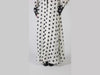 Cut from supple silk, this A-line abaya showcases a fresh interpretation of classic pattern play. Inky black polka dots, softly uneven and naturally spaced, drift across a milky white base, bringing a touch of graphic elegance to the airy silhouette. Reversed cuffs in black add balance, while a matching detachable scarf offers effortless styling options.